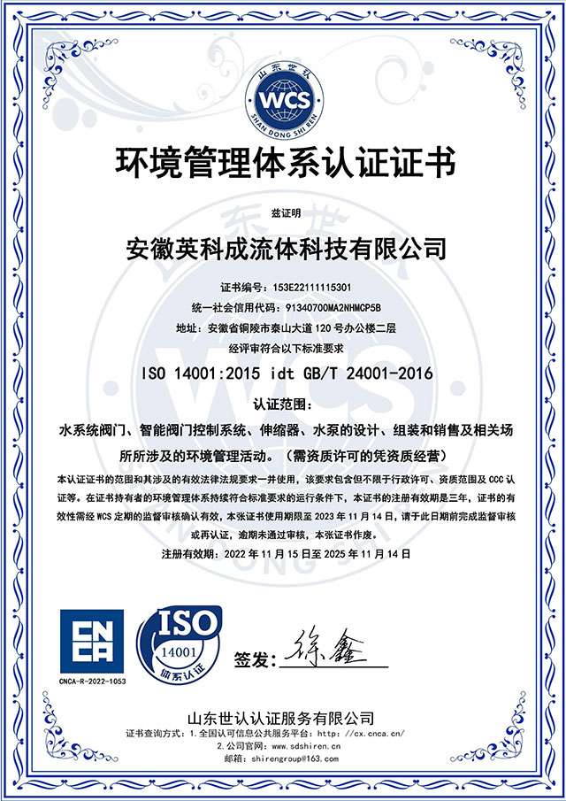 當前位置:首頁 > 榮譽資質 > 環境管理體系認證證書